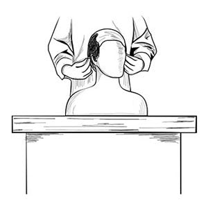 Securing the wrap over the head with tape:See picture. Tape should start from the front-side of the forehead and end at the backside for securing. Next piece of tape should be stuck around the perimeter of your head – above the forehead. Then taping should be done side-to-side overlapping the forehead and the hairline by minimum one inch. Similarly one more stretch of tape should be secured from the forehead to the backside of the head; and this should be continued till you are confident that the plastic wrap is firmly secured.